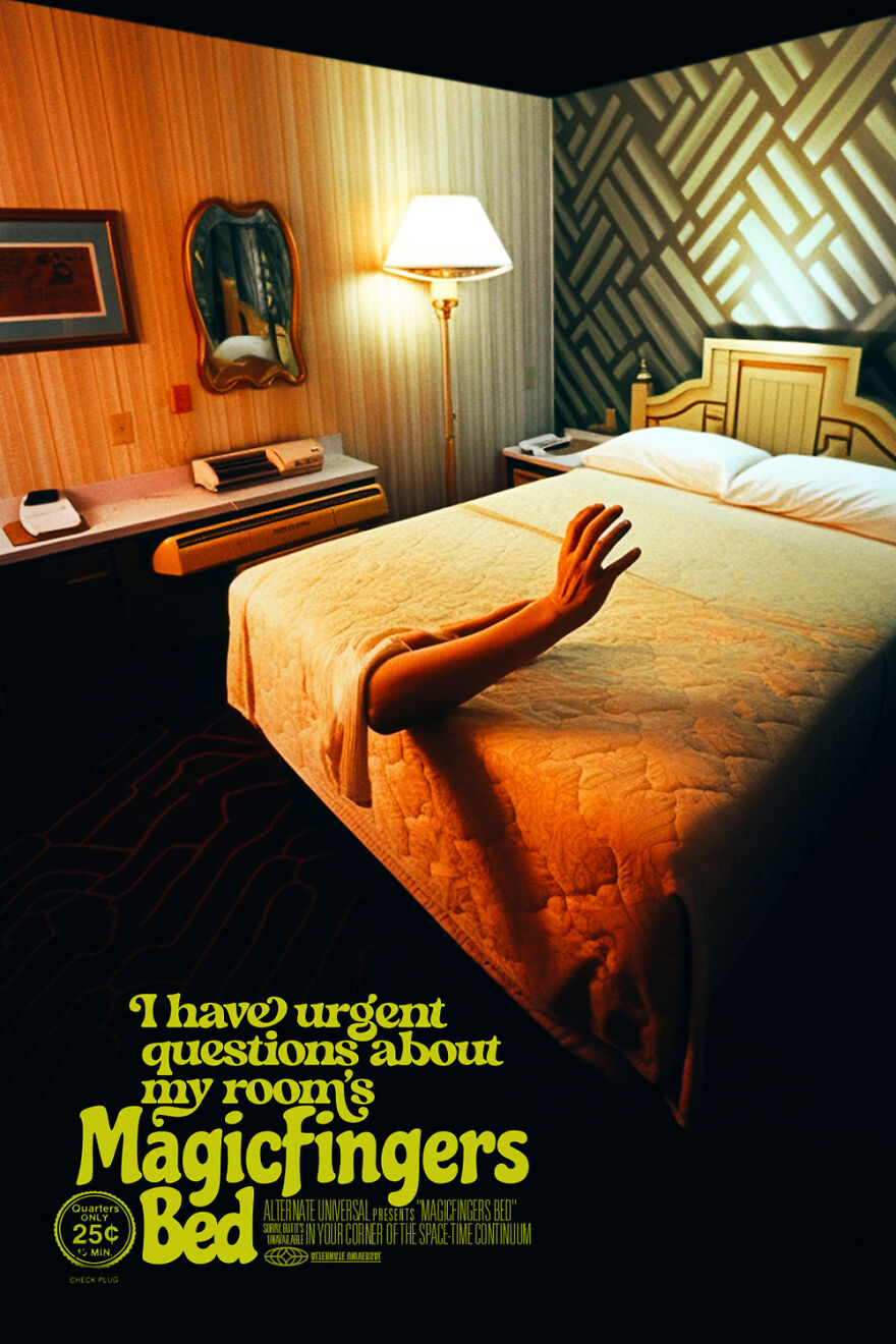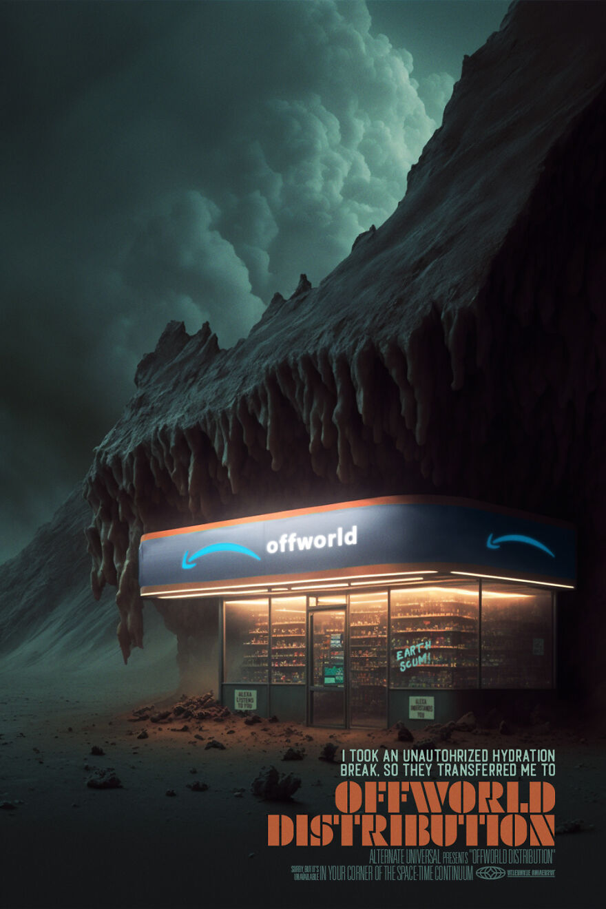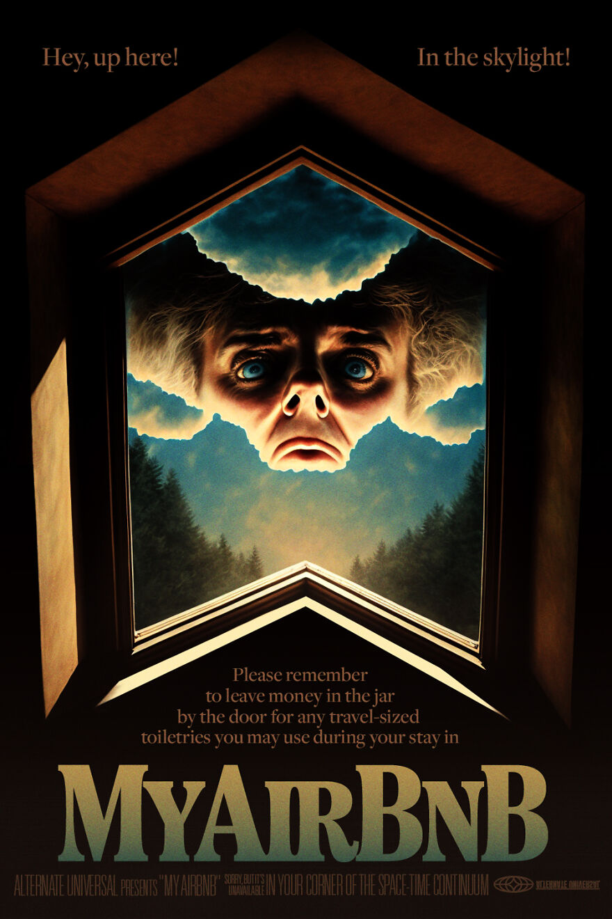 As I worked on the posters, they went from just goofy to, well, equally goofy, but with more of a cultural reference, touching on the seemingly banal elements of daily life, and turning them into imaginative film scenarios. The themes I tend to touch on are pop and internet culture, late-stage capitalism, tech and tech companies, AI, life in Canada, and of course, movie parodies.