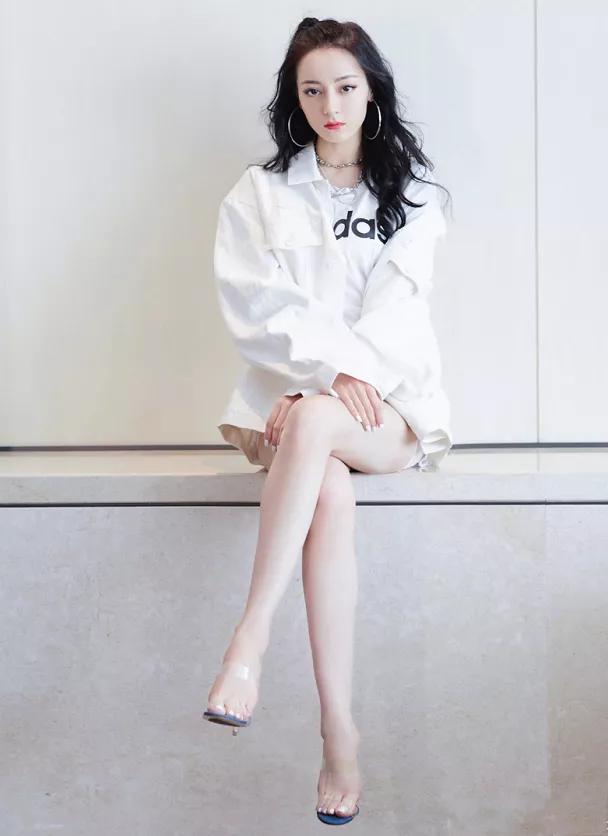 这套造型照中,迪丽热巴是一件白色工装外套搭配下衣失踪的穿法出镜的,脚上则是尝试了一款透明的高跟鞋,第一眼看起来就和没穿一样。不过不知道是鞋子太小了还是怎么样,热巴穿上的效果全程都有点挤变形的感觉。