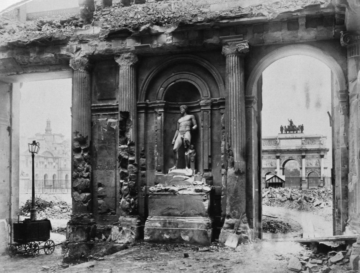 The ruined interior of the Palais des Tuileries in Paris. It was destroyed in 1871 by supporters of the Commune of Paris.