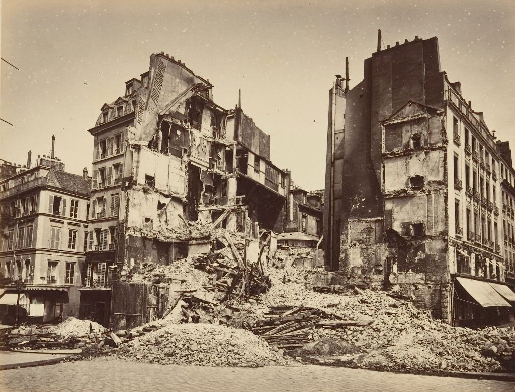 Buildings bombarded by the German occupation troops in the Paris Commune, during the Franco-Prussian War.